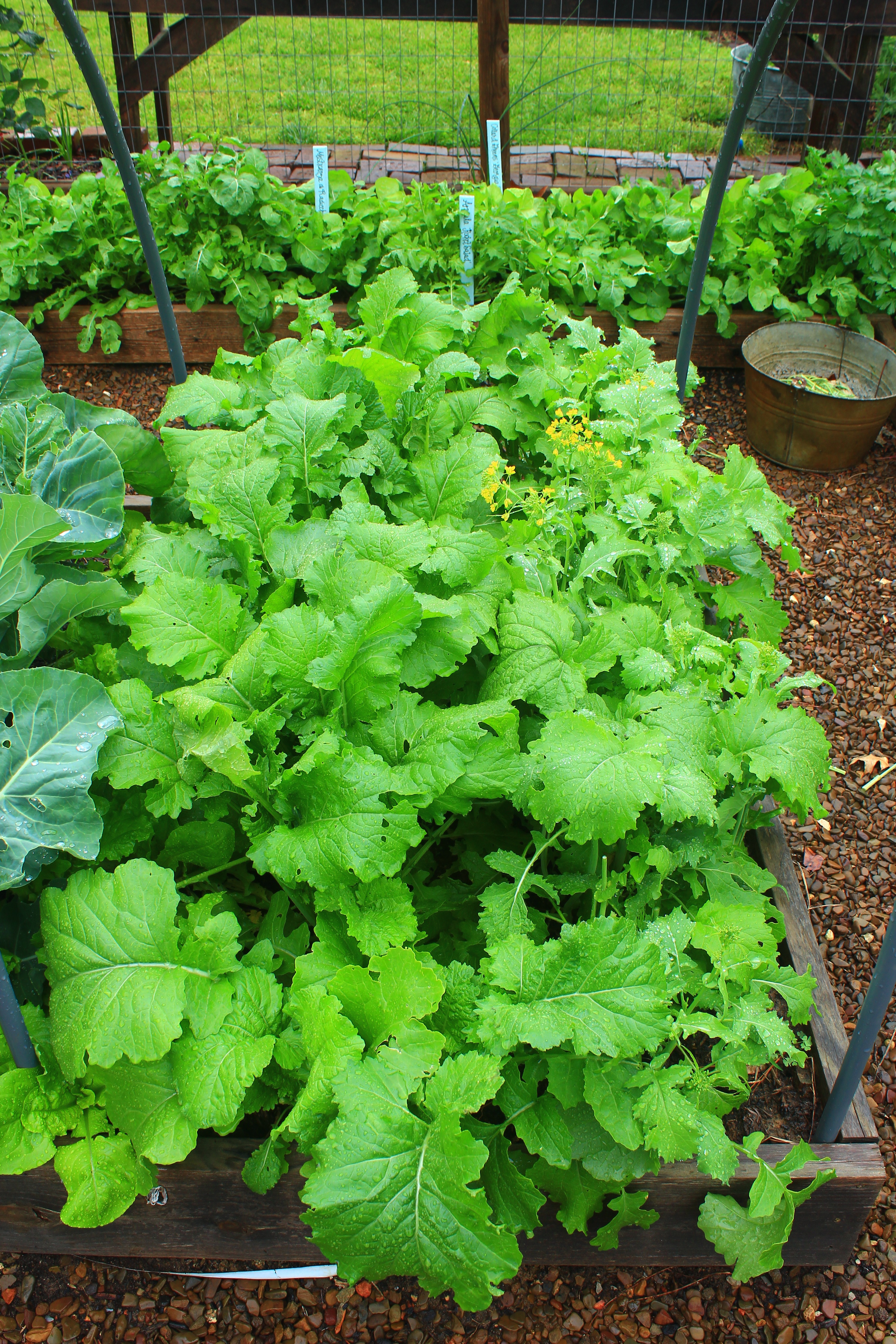 Gardening teaches you so much about yourself. I have been surprised and not a little ashamed to discover that I am a bit of a vegetable hoarder. Now that I have made this discovery, I’m better able to understand what’s behind it. Partly I’m still trying to figure out how much of everything to grow and who to give the excess to. But it’s also that when everything looks so pretty and lush and so many shades of green, I want to look at it, not harvest it. Yet whether I like it or not, my garden is constantly teaching me the profound truth of Use It or Lose It– to the bugs and the bolting and the ravages of time. These days I make a concerted effort be where I am and eat what I’ve got, to take a salad to every get together I attend, to eat at least one a day myself, and to push lettuce on anyone who walks by and I still can’t keep up! It’s truly amazing how much food a 4 x 8′ bed can produce.