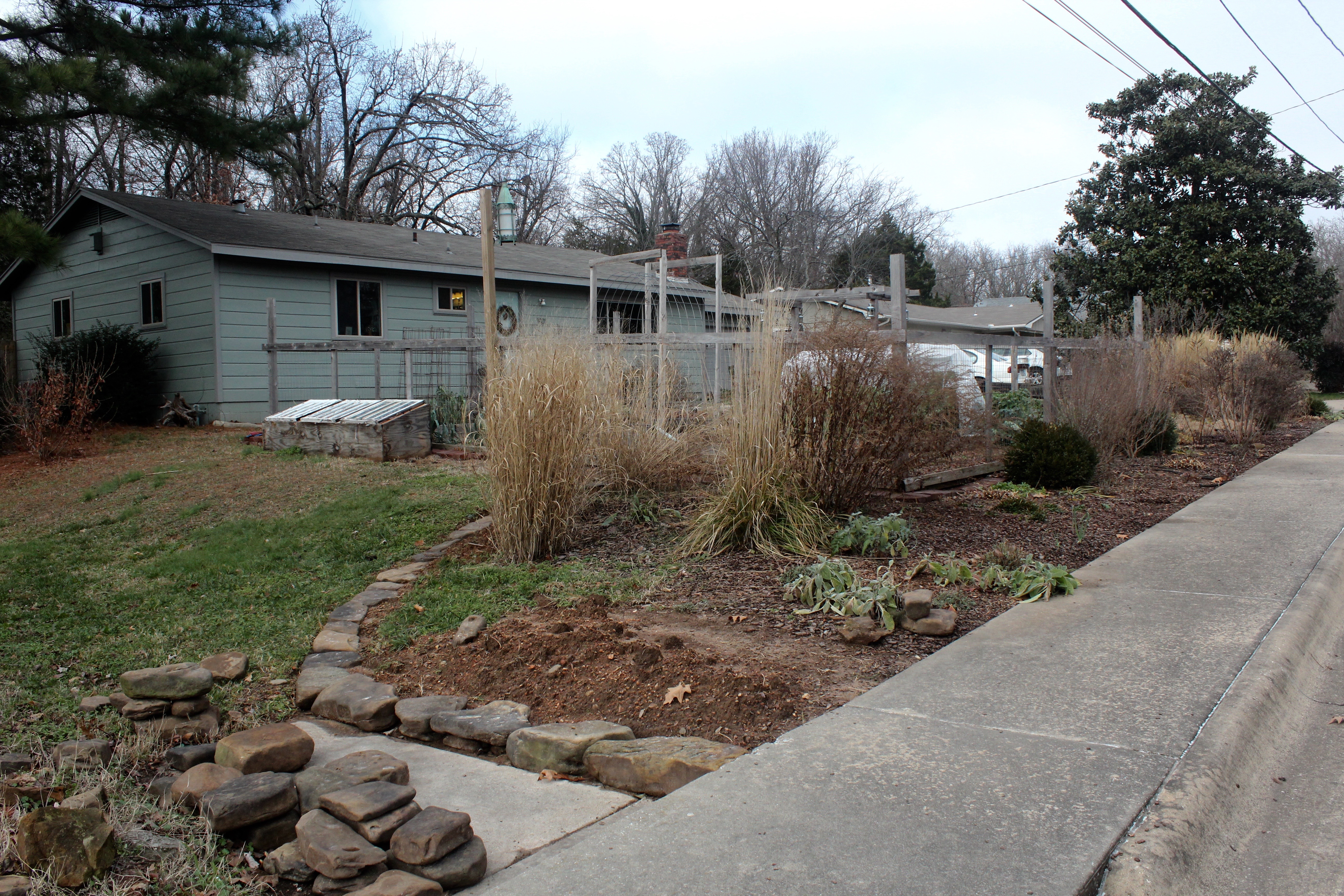 Because it’s been so mild and there’s not much left to do in the garden proper, I’ve also been playing with rocks in the dirt. I’m expanding the perennial bed and making a border between it and the lawn.
