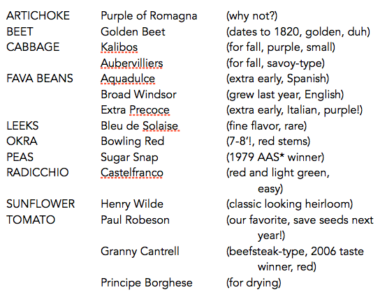 Okay, that’s done! Stay tuned for this year’s Official Seed Selections. And then I have to figure out where to put it all. I’ll address that soon with a Garden Map.